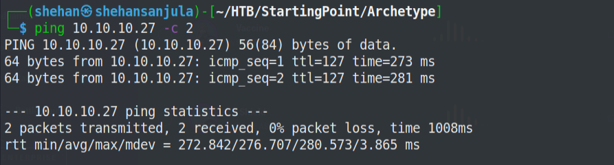 Before continuing to enumerate steps, it's best practice to ensure the VPN is connected and the machine is alive by issuing some "ping" requests toward the IP address of our target machine. Because sometimes the machines might "Disable" ping requests when passing through the firewall. But in most cases, ping requests will be a success! ๐