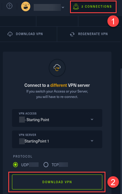 Log in to hack the box. Please navigate to the top-right of the website and, you'll see the "connect to HTB" tab. Do the configuration as you prefer, or else keep the defaults as it is.